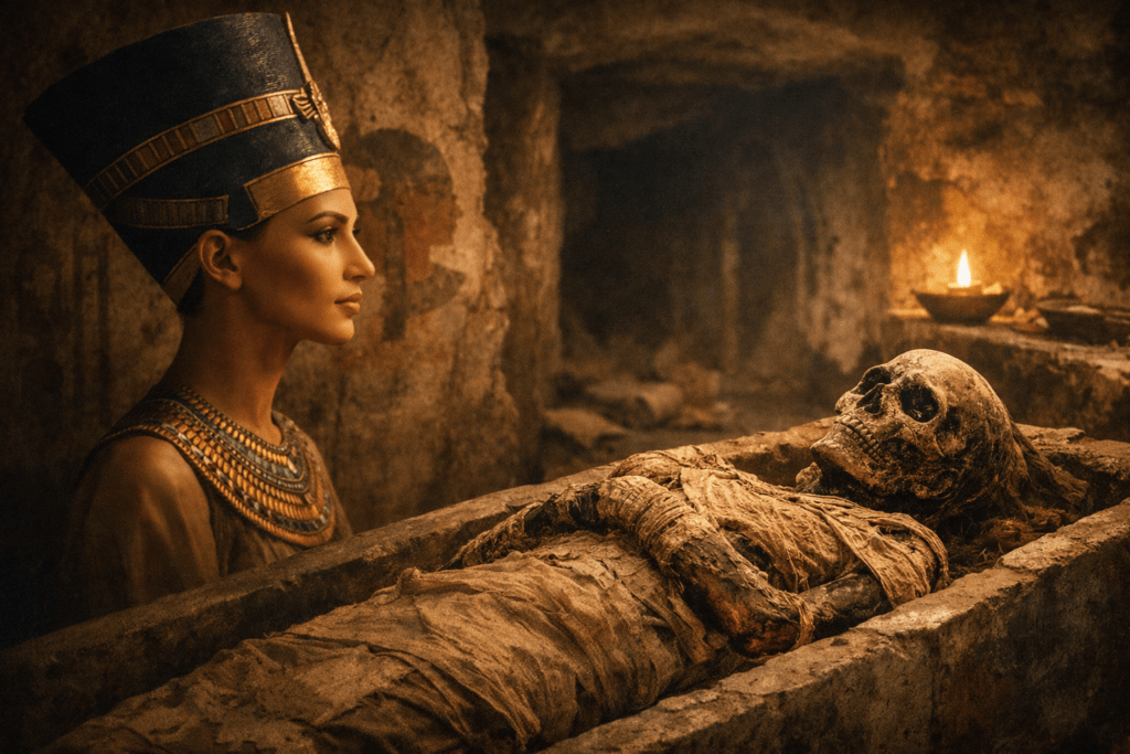 Depuis plusieurs années, une hypothèse revient régulièrement dans les cercles égyptologiques et auprès du grand public : la momie KV21B, découverte dans la Vallée des Rois, pourrait être celle de Néfertiti. Cette théorie, séduisante mais controversée, repose sur un faisceau d’indices archéologiques, biologiques et contextuels qu’il convient d’examiner avec rigueur.