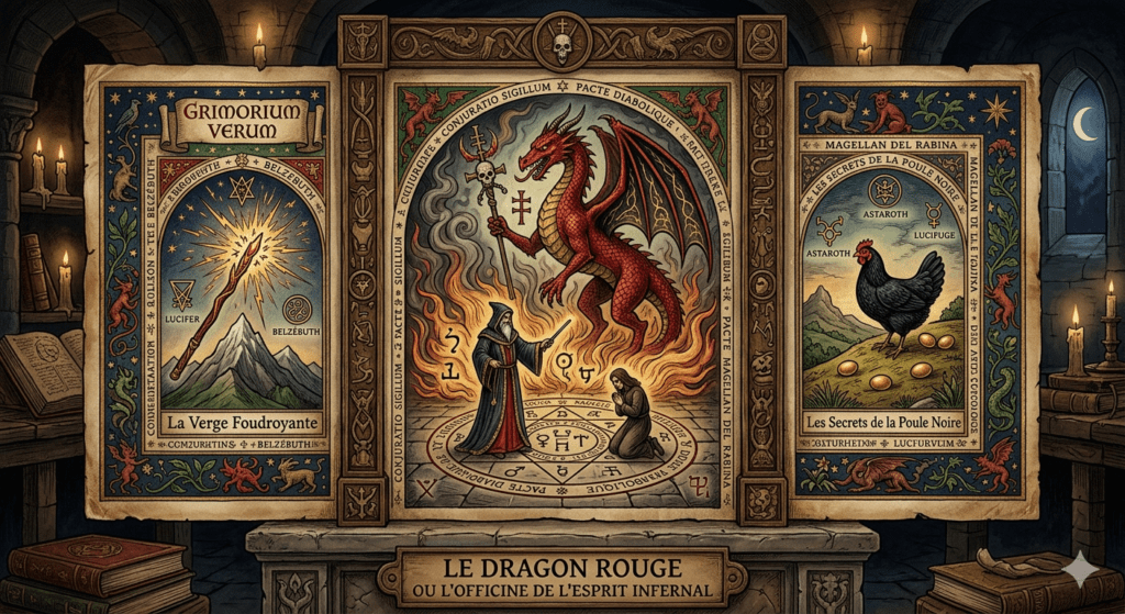 Le domaine de l’occultisme occidental possède ses « classiques », mais aucun n’évoque une aura aussi sinistre et fascinante que le Dragon Rouge, également connu sous le titre de L’Officine de l’Esprit Infernal. Ce texte, qui circule sous diverses formes depuis le XVIIIe siècle, est considéré par les bibliophiles et les démonologues comme l’un des manuels de rituel les plus explicites concernant l’invocation des puissances souterraines.